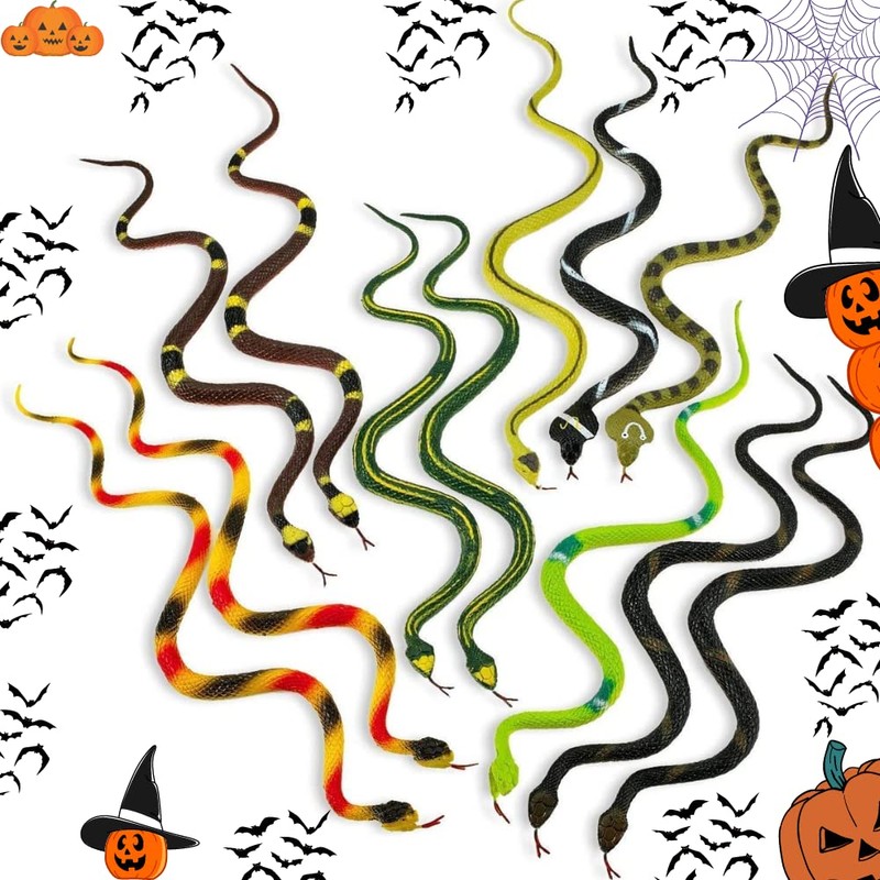 Kicko 12 Pack of 14 Inch Assorted Rubber Toy Snake - Soft Flexible Realistic Fake Floating Plastic Snakes - Colorful Bulk Small Sizes Set for Reptile School Collection, Birthday Party, Halloween Props