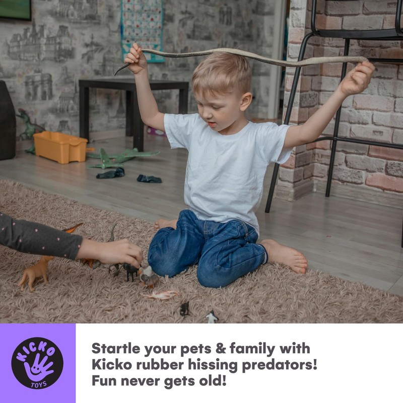 - ALL-TIME CLASSIC JOKE – Scaring people for fun never gets old. These Kicko rubber hissing predators are highly liked by everyone as novelty items. Try them out while your pets are sleeping, startle them when they woke up. Do the same with anyone in your family.