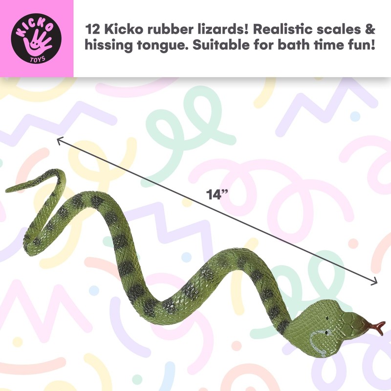 - AWESOME DUPLICATES – You get one dozen Kicko rubber-based, legless lizards for each pack. Features almost-true scales and a hissing tongue, making them look like real venomous beasts. They can also be used as bath time companions, float them and play with them.