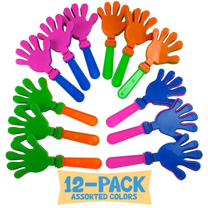 - CLICK IT INTO YOUR CART NOW - Includes a set of 12 7.5-inch long, durable clappers with a variety of eye-catching colors that boys and girls will surely enjoy. This bulk set comes with a combination of blue and pink, and green and yellow. A prop that will kill your boredom!