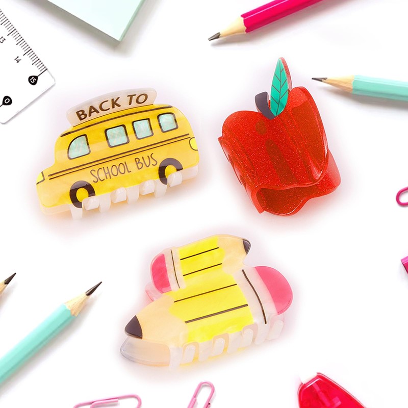 KICOSY 3PCS Back to School Hair Claw Pencil Apple and School Bus Shape Hair Clips Funny Teacher Claw Clips Cute Teacher Gifts