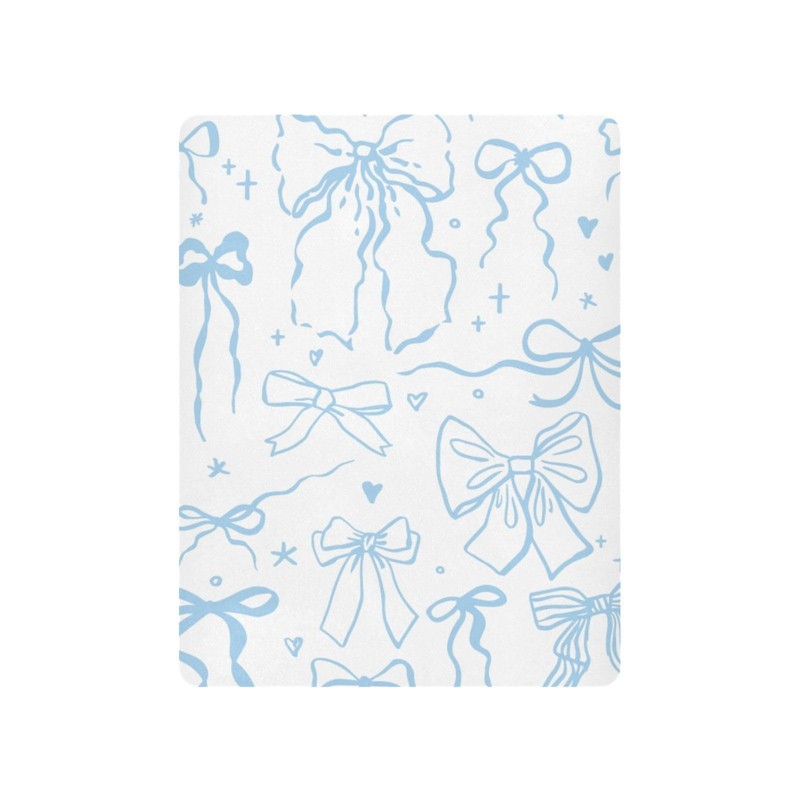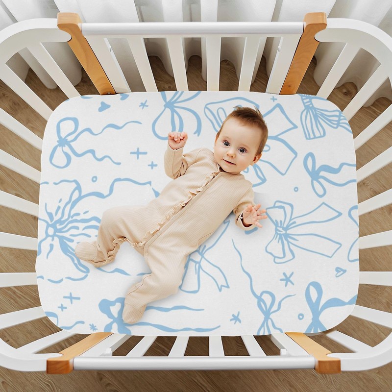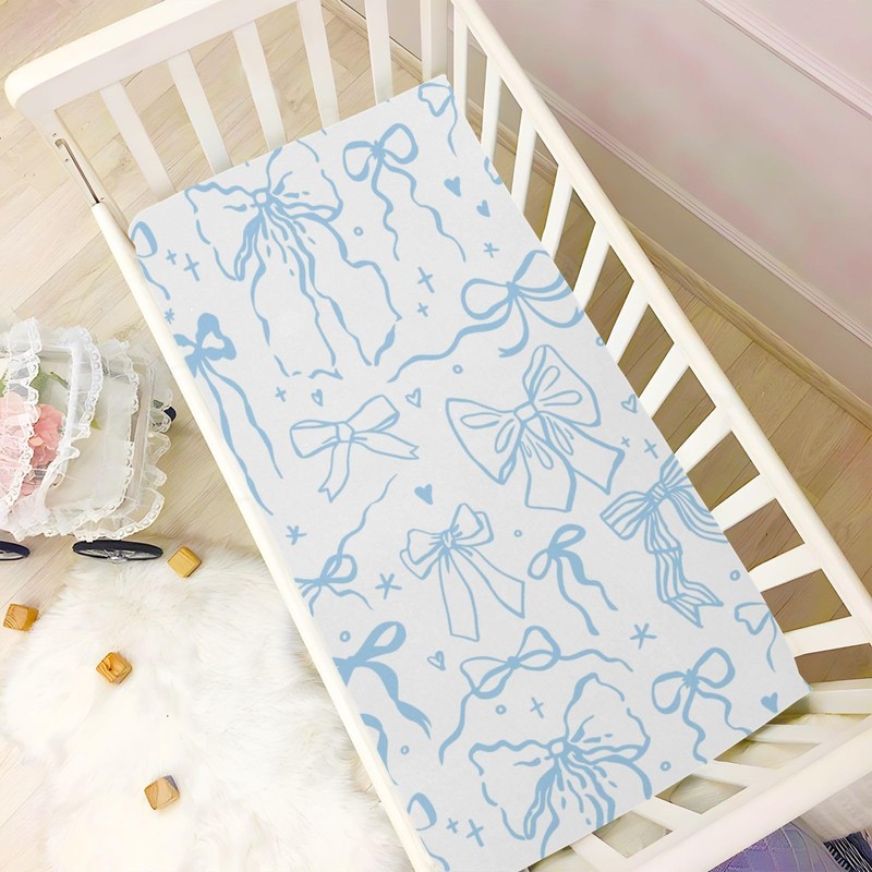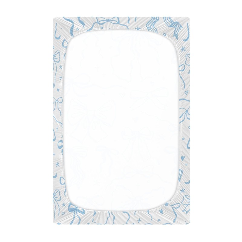 KICPOAY Fitted Crib Sheets Cartoon Doodle Blue Bows Stretchy Portable Playard Sheets for Baby Toddler, Breathable Soft Mini Crib Mattress 39 x 27 in for Boys and Girls