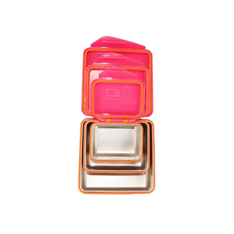 Kid Basix by New Wave Safe Snacker 3 Size Bundle Reusable Stainless Steel Lunchboxes Includes 23oz, 13oz and 7oz Reusable, Fuchsia