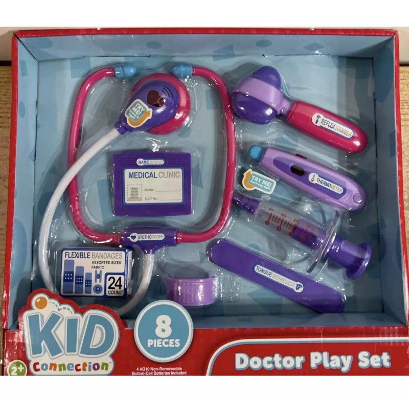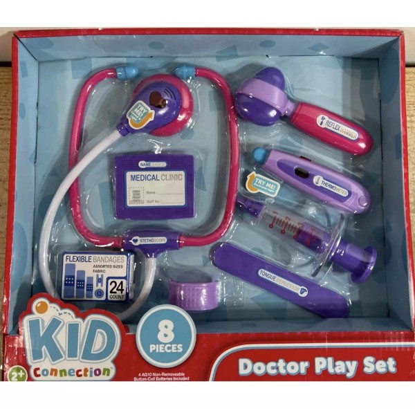 Kid Connection Doctor Play Set New 8 Realistic Pieces Roll Play Purple/Pink Set