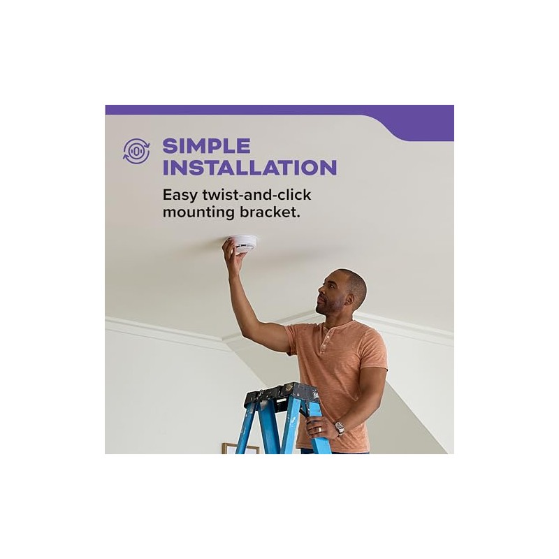 - NO WIRING NEEDED: Operates on 2-AA alkaline batteries (included) providing easy installation, simply mount the bracket onto the ceiling and twist & click the 5-inch smoke & CO alarm into the bracket.