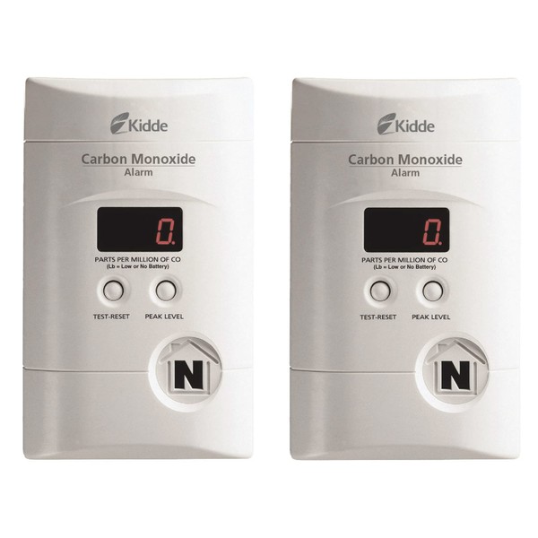 Kidde Carbon Monoxide Detector, Plug In Wall with 9-Volt Battery Backup, Digital LED Display - 2 Pack