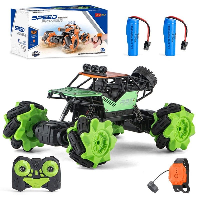 - NNOVATIVE WRIST CONTROL TECHNOLOGY - Take your remote control RC toy car experience to the next level with our innovative wrist control technology. In addition to the traditional remote control, our off-road RC car also comes equipped with a wristband that allows you to control the truck's movements with a simple flick of the wrist