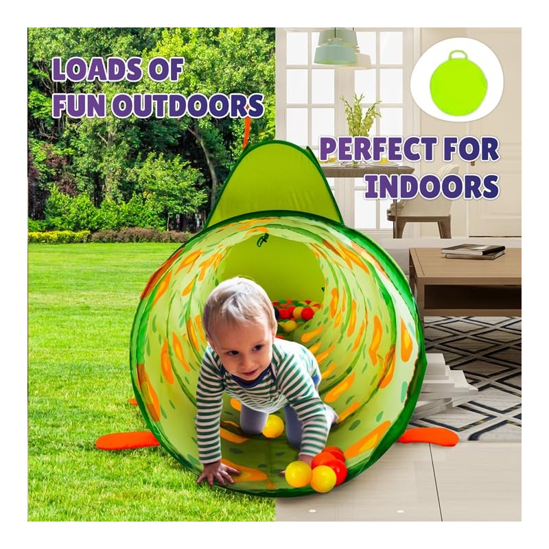 - FUN, VERSATILE PLAY BUNDLE – Each set comes with a fun play tunnel and matching kid’s tent. Your child can play, crawl, explore, and pretend with friends!