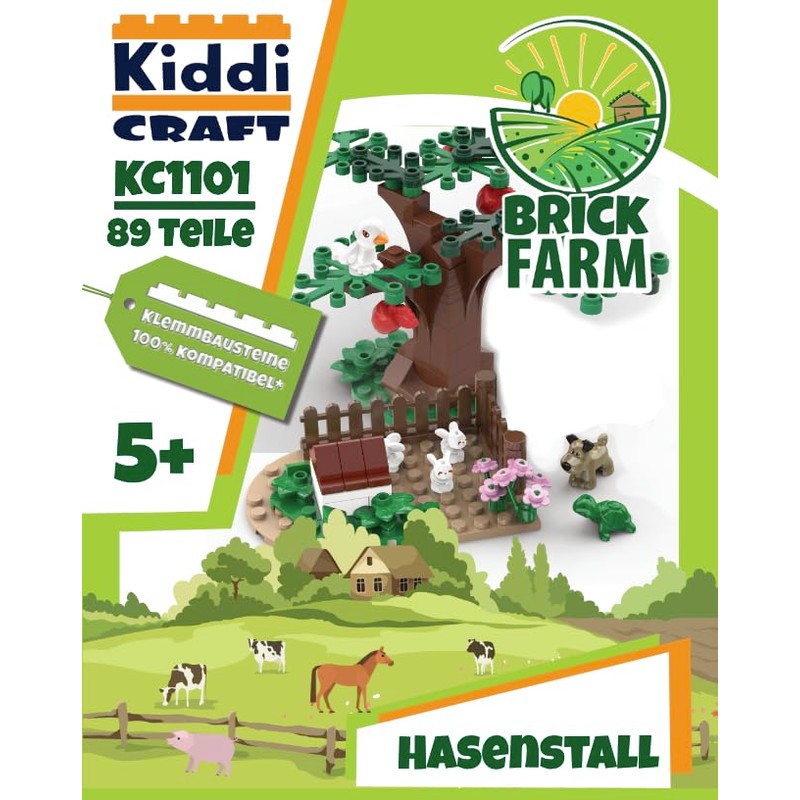 Kiddicraft KC1101 rabbit hutch. Build your little petting zoo and expand your clamping block landscape with this beautiful set. It contains: total 86 pieces, 3 rabbits, 1 dog, 1 bird, 1 turtle. Good quality of the building blocks. 100% compatible with the clamping blocks of the market leader. Easy-to-understand assembly instructions included. Made in China. All pictures shown in the pre-sale are pre-production pictures and may differ slightly from the goods delivered later. Attention! Not suitable for children under 3 years as small parts may be swallowed. Choking hazard!