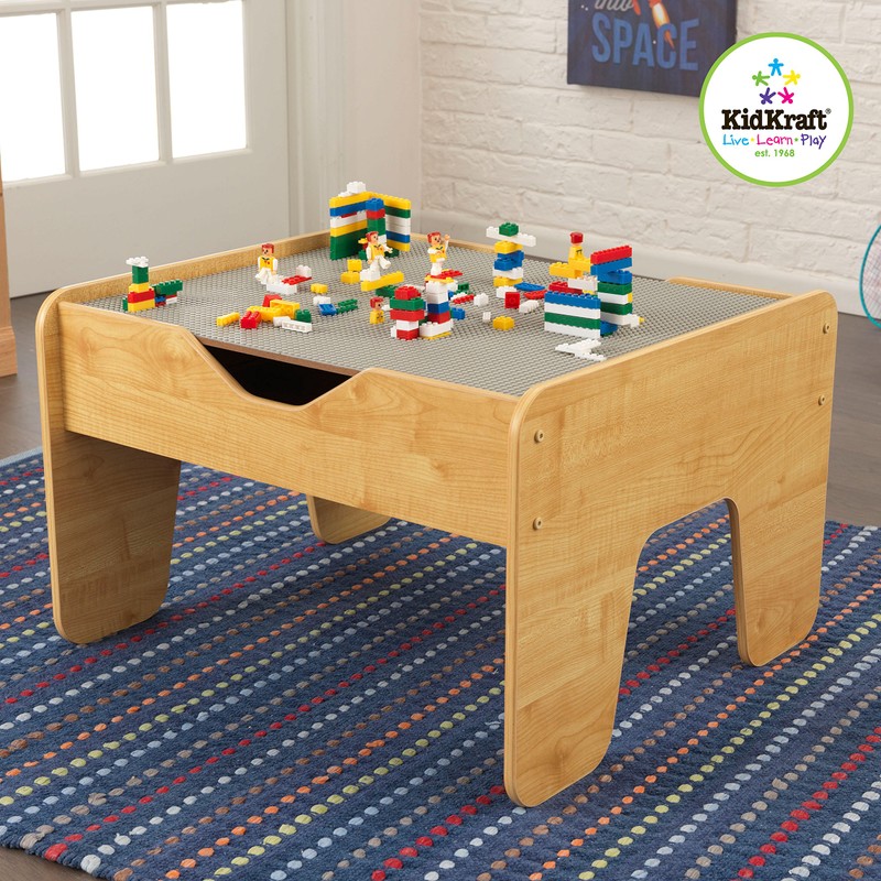 KidKraft Reversible Wooden Activity Table with Board with 195 Building Bricks – Gray & Natural, Gift for Ages 3+