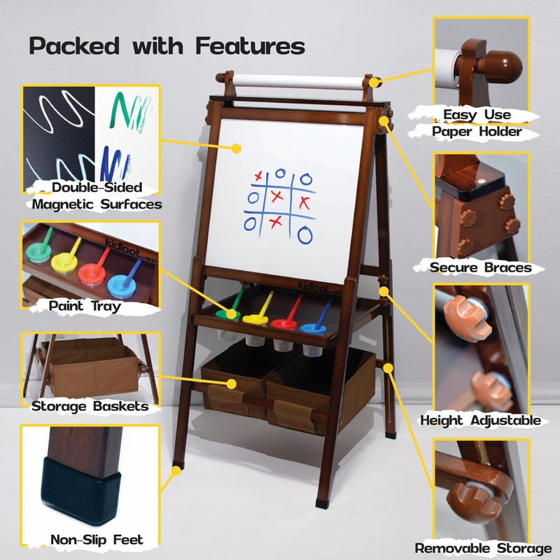 Kidloot Large All-in-One Double Sided, Magnetic, Height Adjustable Art Easel for Kids with Built in Storage Bins, and Art Supplies - Stable Design is Safe and Grows with Children Ages 3-10