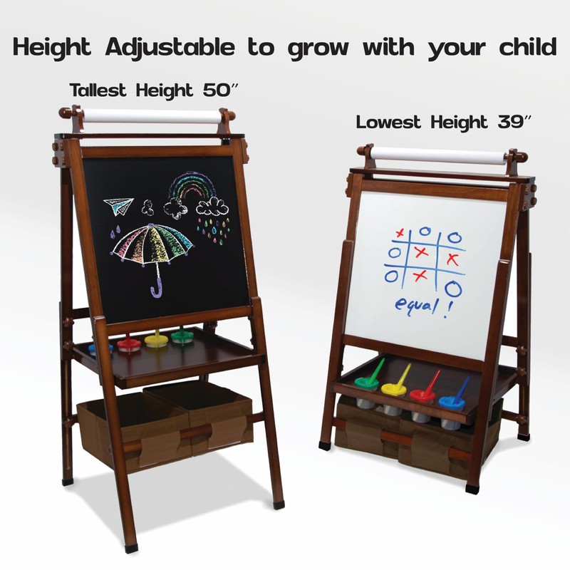 - Height Adjustable Legs allow the easel to grow with your children. Our unique design allows for quick height adjustment, while keeping the knobs and hardware out of reach, and away from messy materials that might cause others to jam up over time.