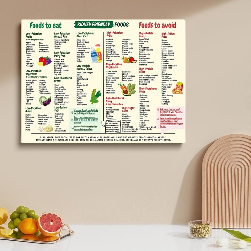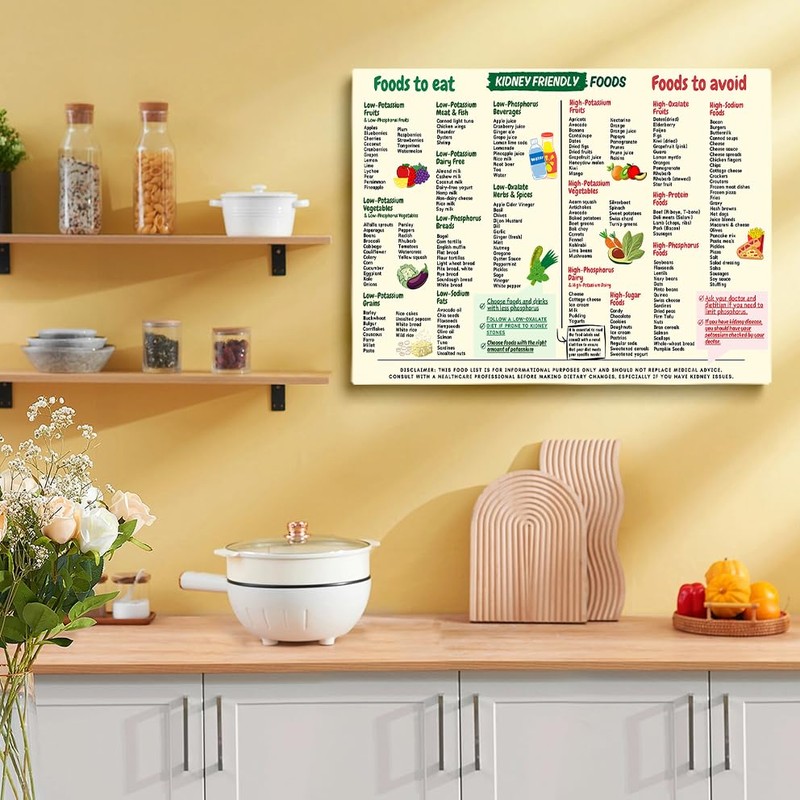 Kidney Friendly Food List Chart Canvas Poster, Kidney Awareness Diet Poster, Low Potassium Grocery Shopping List Art, Kidney Diet Plan Guide Print, Healthy diet kitchen print 12x16in Unframed