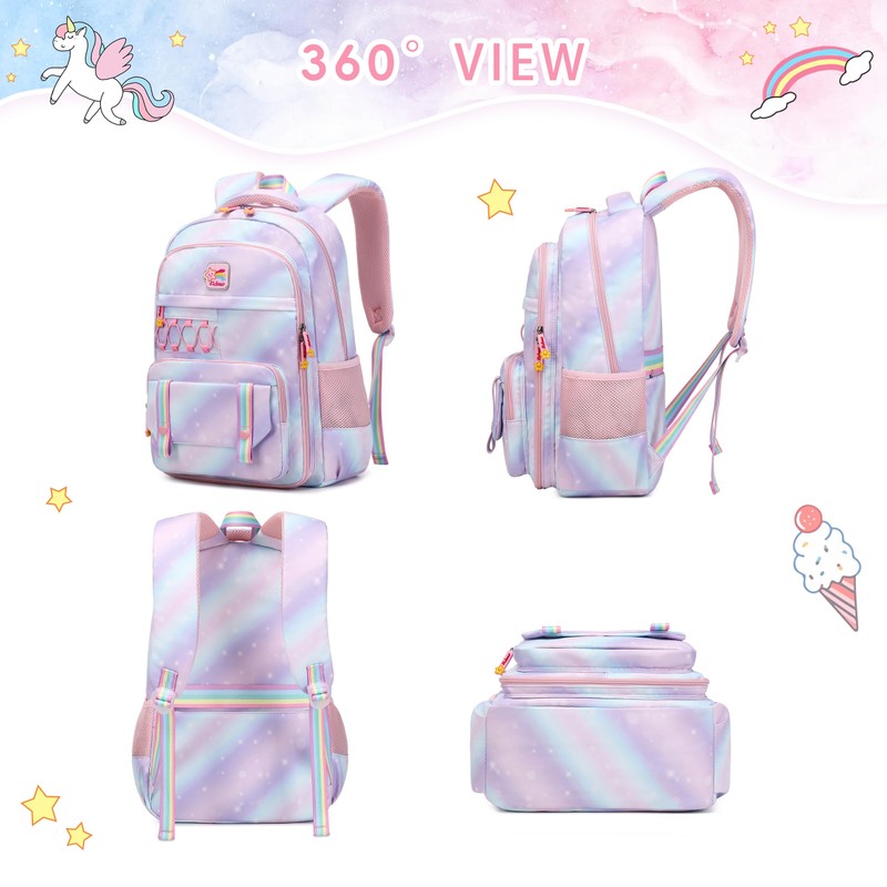 - 【WATERPROOF MATERIAL & SMOOTH ZIPPER】Cute rainbow girls backpack is made of waterproof, super lightweight, high density nylon material and cute printed polyester lining. The metal zipper is made of high quality zipper, designed to stand the test of time