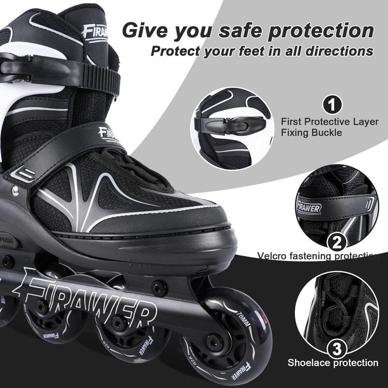 - 【Triple-Protection Safety System】Combining laces, adjustable straps, and secure buckles, these skates offer triple-lock stability to prevent slips and ankle twists. Ideal for beginners learning balance and control with confidence.