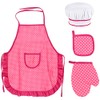 Kids Apron and Chef Hat Set, Cooking Baking Set Kids with White Child Chef Cooking Hat, Rose Red Cotton Chef Apron, Children Oven Gloves, Heat Resistant Pad for Toddle From Age 3-12 Years Old