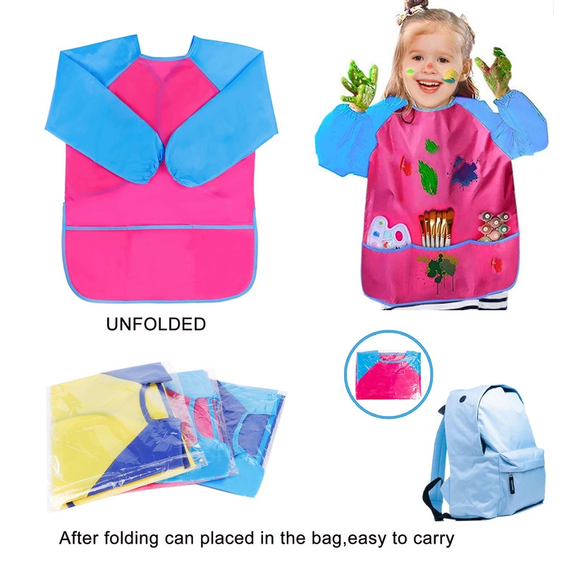 - Wonderful Gift: Ideal for kid's watercolor paints, painting sponges, paint brushes. The lightweight fabric is easy to carry. Our waterproof art smock is great for kids who love painting and drawing aged from 3-7 years and can protect them from staining clothes.