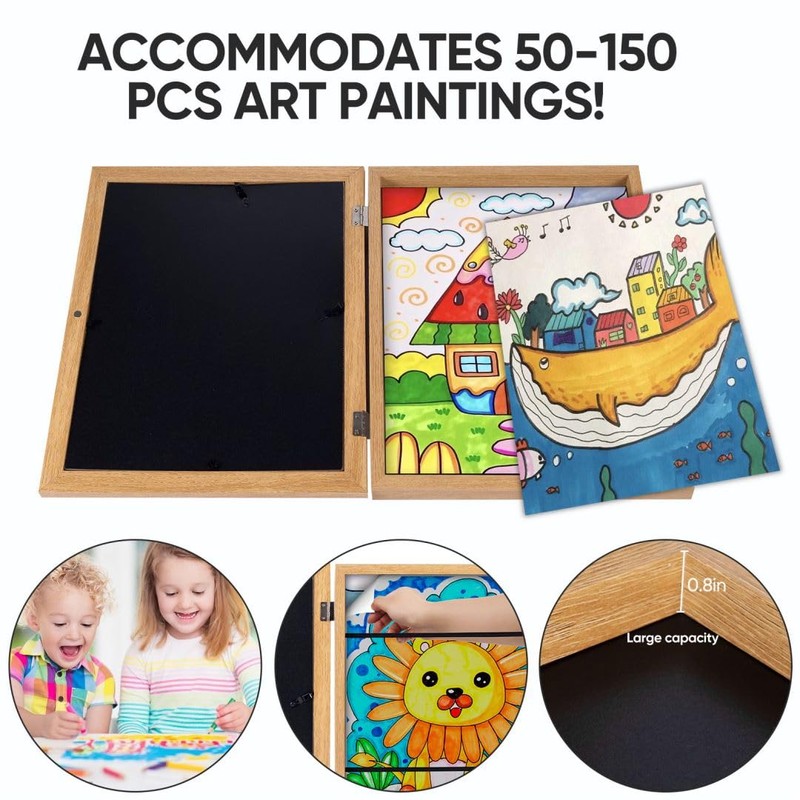 - Great frames for kids artwork that open:10x12.5 inch childrens art project frames, with 180-degree front open design,opens like a book with interior elastic straps for artwork storage. kids artwork frames changeable,this design allows for easy and convenient opening and closing, allow you to showcase your artwork or store old ones.