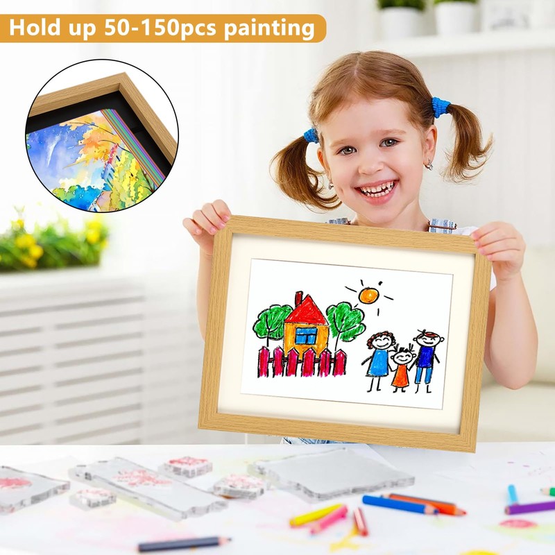 - Easy to Use and Release: Our kids' art display frame is equipped with a magnetic clasp design, making it easy to open and close with a 180-degree open metal hinge. It's perfect for interchangeable pictures from artwork frames on the wall directly. Our wooden artwork display picture frame is perfect for displaying kids' paintings, photos, postcards, scrapbooking, concert tickets, collections, or any memorabilia