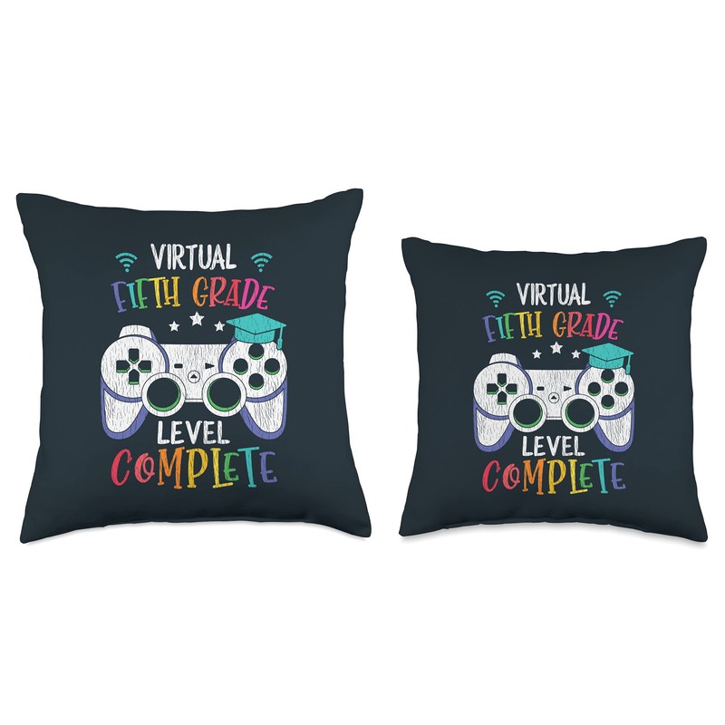 Kids Back To School Apparel.USA Virtual 5th Grade Complete Video Game Back to School Gamer Throw Pillow, 16x16, Multicolor