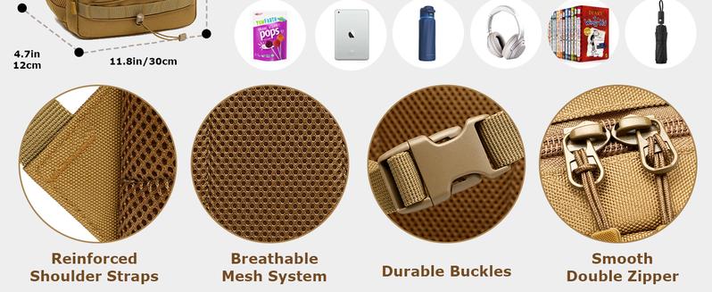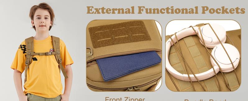 Kids Backpack, 20L Tactical Backpack for Outdoor Hiking Camping, Molle Backpack for Boys (Black Camo) - Color: brown