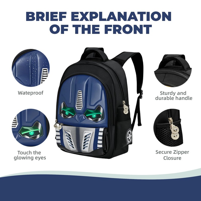 Kids Backpack with Glowing Eyes & 3D Cartoon Panels for Boys Ages 4-12 - Interactive School Bag, Durable Design for Kindergarten, Day Trips and Back to School Gifts (Large size blue)