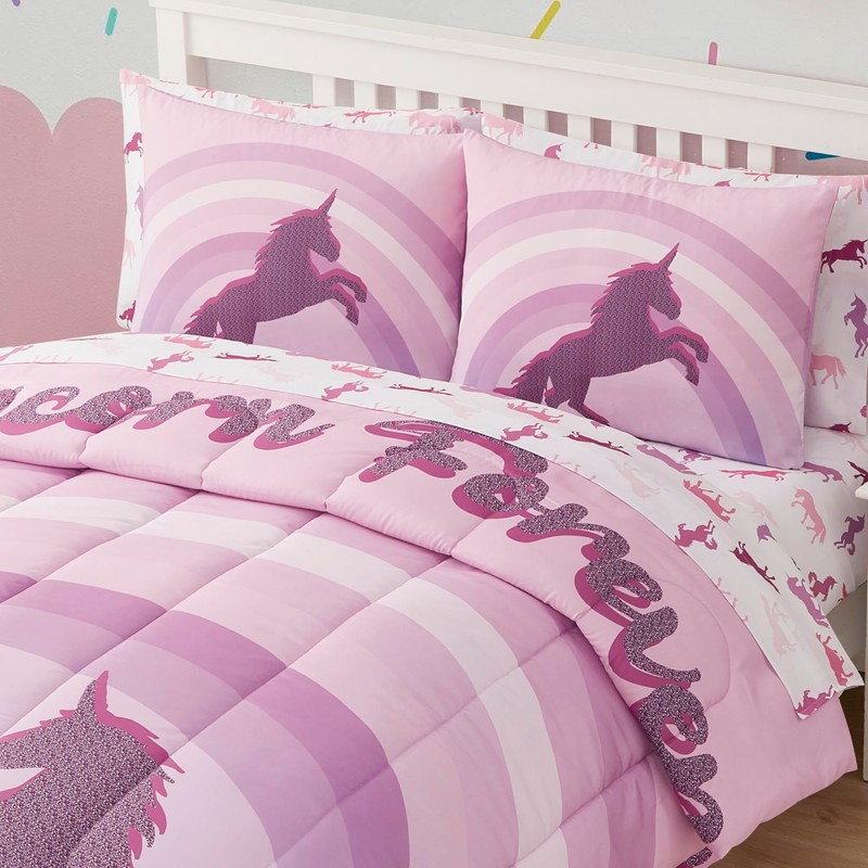 Kids Bedding Set Bed in a Bag for Boys and Girls Toddlers Printed Sheet Set and Comforter, Full, Unicorn Forever
