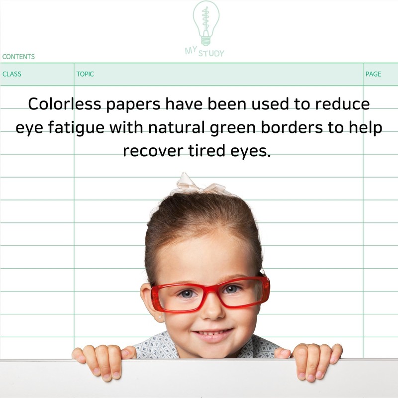 The off-white pages with green printing are designed to minimize eye strain, even during extended use. Your comfort is our priority, ensuring that you can read and write without discomfort.