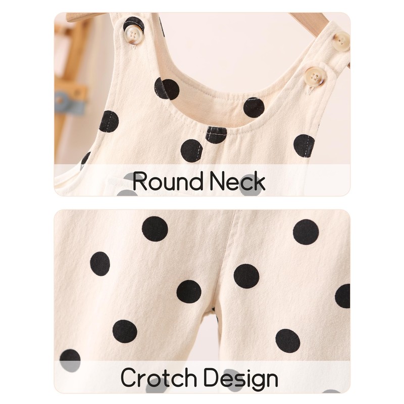Kids Boys Girls Polka Dots Bib Overalls Toddler Adjustable Straps Jumpsuit Cotton Rompers with Pockets One Piece Cargo Overalls Beige 4T