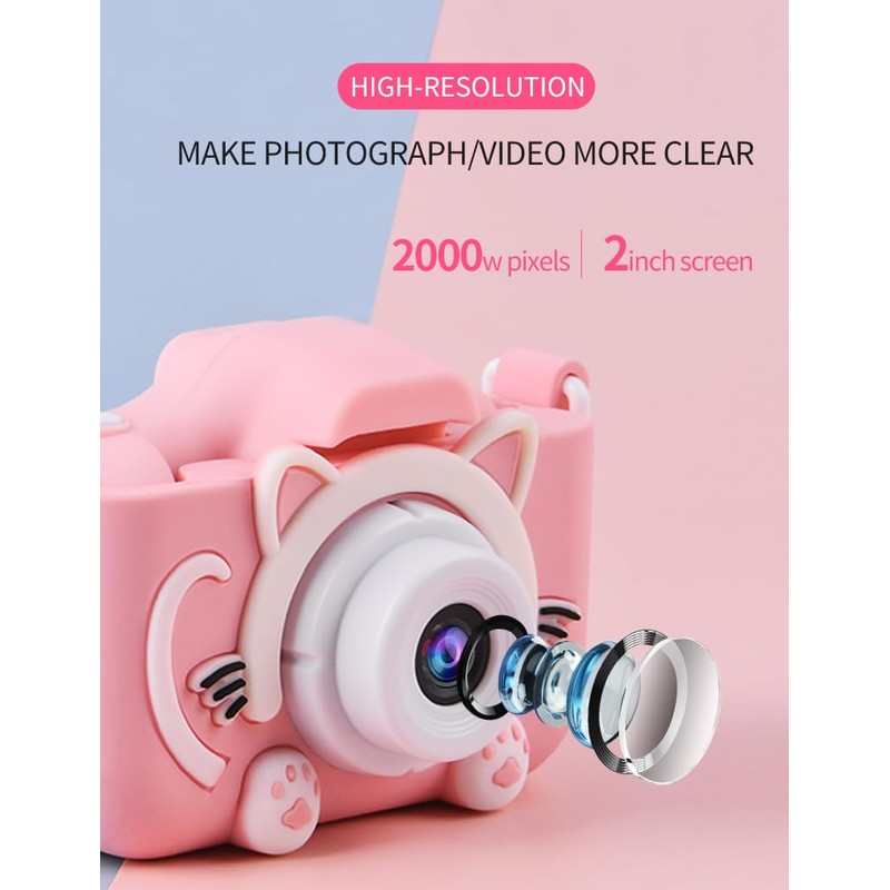 - đ·ă2000w Pixel HD Dual Lensă: This Kids Camera features front and rear cameras, both of 2000w pixels, 1080P high-definition resolution, and a 2.0in high-definition display screen, allowing kids to discover the details and beauty of nature while shooting and exploring it