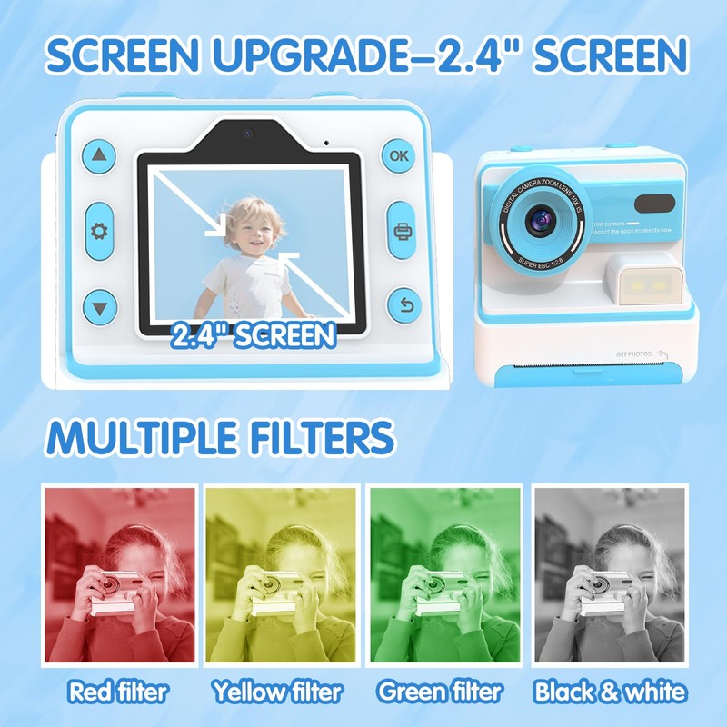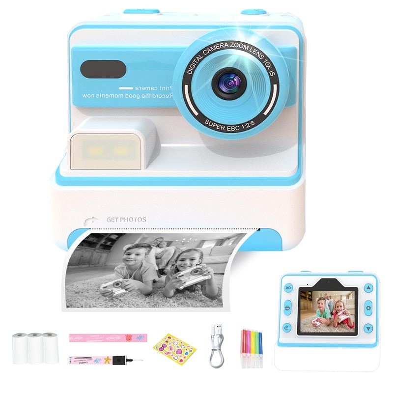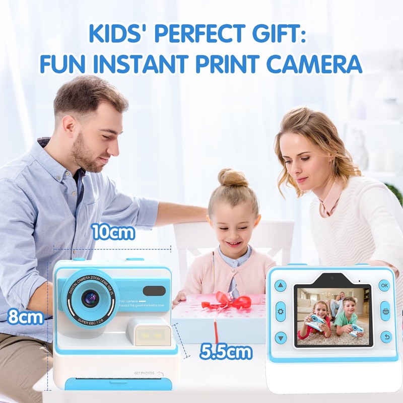 Kids Camera Instant Print, 26MP Front and Rear Camera, 1080P Kids Digital Cameras with 32GB Card and 3 Rolls of Photo Paper, Takes 12000 Photos, for Girls and Boys Ages 3-12 - Blue