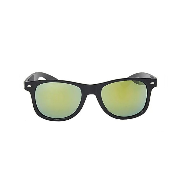 Kids/Childrens Size - UV400 Black with Green Yellow Mirrored Reflective Lens Classic Sunglasses! Boys Girls Unisex