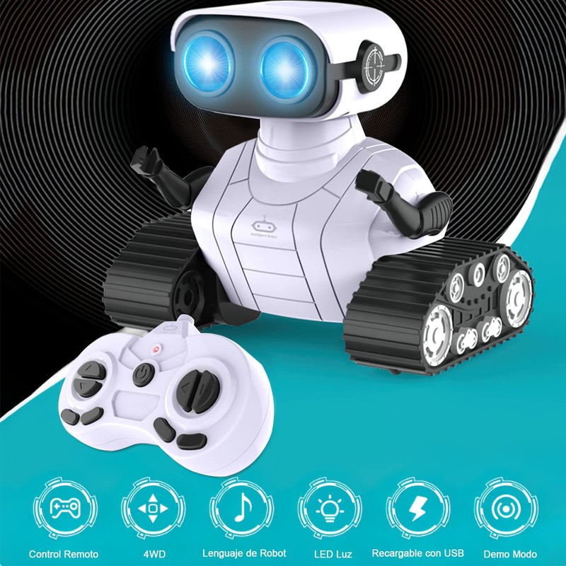 - 【TAMAÑO PERFECTO PARA NIÑOS】El robot de juguete mide 11,7*12,6* 9 cm, lo que es perfecto para el tamaño de la mano de un niño. Además, las manos y la cabeza del robot inteligente se pueden mover y girar, lo que añade mucha diversión al juego. Los grandes ojos brillantes dan al robot un aire más tecnológico, ¡y ningún niño puede resistirse a un robot a control remoto tan divertido!