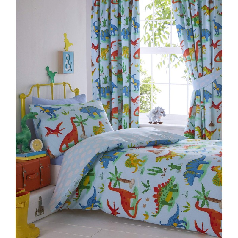 "Kids Club Dinosaurs Bed Duvet Cover and Pillowcase Set, Polyester-Cotton, Blue,2 pcs, Single,".