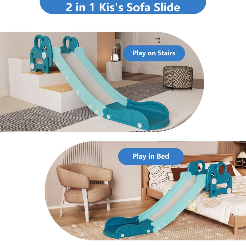 Kids Couch Slide for Bed Sofa Stairs, 2 in 1 Toddler Baby Plastic Indoor Slide with Seat, Playground Toys for Toddlers Age 3+, Easy to Assemble, Blue