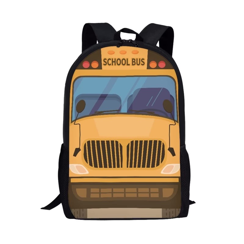 Kids Cute School Bus Print Backpack 17 Inch Large Capacity Durable Portable Zipper Bookbag for Girls Boys Elementary Padded Lightweight Backpack with Mesh Pocket
