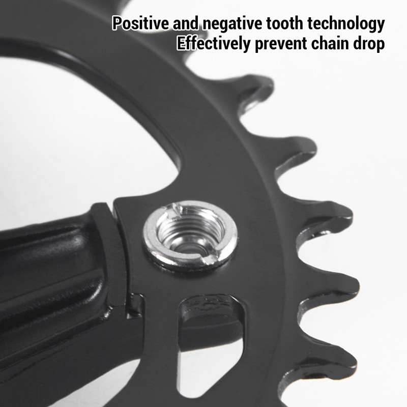 - [Effectively Prevent Chain Fall] The positive and negative teeth design of the crankset prevent chain from falling off, ensuring a smoother pulling power and a comfortable cycling experience
