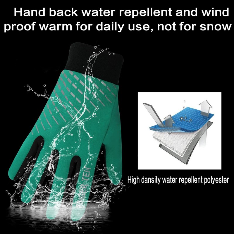 Kids Cycling Gloves Winter Full Finger Warm Touchscreen Running, Boys Girls Glove Grip Liner Thermal for School Sport Outdoor Windproof Waterproof Anti Slip (Green,L)