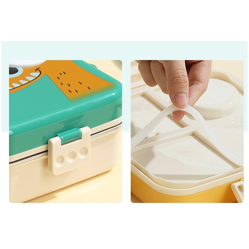 - DESIGN FEATURES: Adorable dinosaur themed lunch box with secure latching system and separate compartments for organized meal storage.Compact and portable design fits easily into most lunch bags and backpacks. Perfect for school, work, picnics, or travel. Ideal for a variety of foods, including salads, main dishes, fruits, and snacks. Suitable for adults and children alike.
