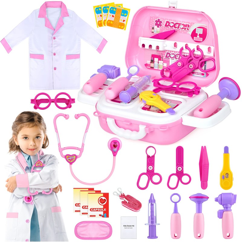 Kids Doctor Kit for Girls, Pink Doctors kit for Kids 22 Pieces Doctor Play Gift for Kids Medical Toys Set with Roleplay Doctor Costume Toddlers Ages 3 4 5 6 Year Old for Role Play