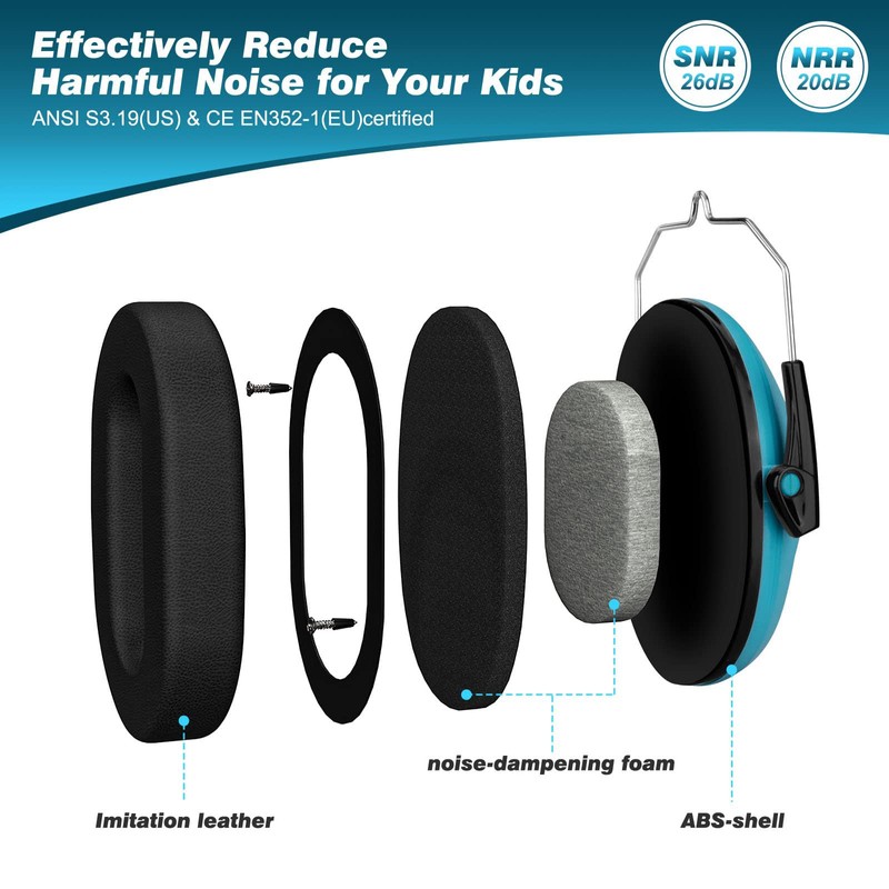 - 【Tested and Certified】: BraveKoi kids ear defenders have been fully tested and certified, ANSI S3.19 test certification (American National Standards Institute) and CE EN 352.1 test certification (European Standard), with accurate information (SNR 26 dB: NRR 20 dB), effectively reducing noise and protecting children's hearing.
