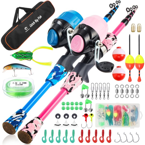 Kids Fishing Pole Kit Set,Portable Telescopic Fishing Rod and Reel Combo Full Kits for Boys, Girls, Beginner, Youth (Blue&Pink, 1.5M 4.92Ft)