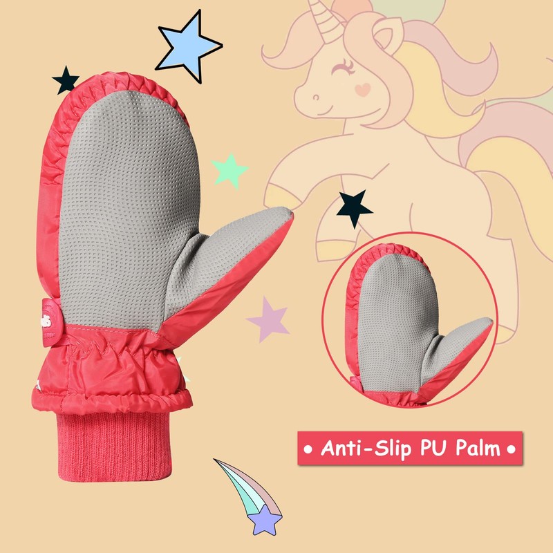 Kids Gloves Winter Thermal Ski Gloves Waterproof Warm Mittens Girls with String Childrens Non-Slip Hand Warmers Snow Sports Windproof Unicorn Heat Holders Snowboard Running Hiking Skiing Cycling