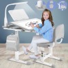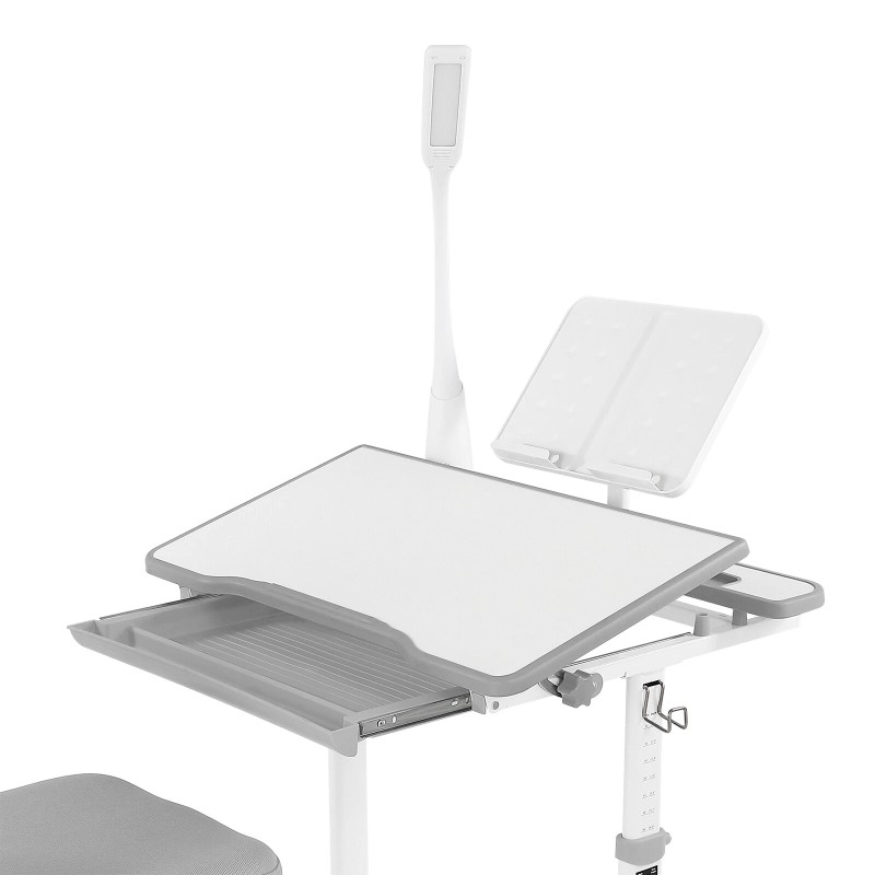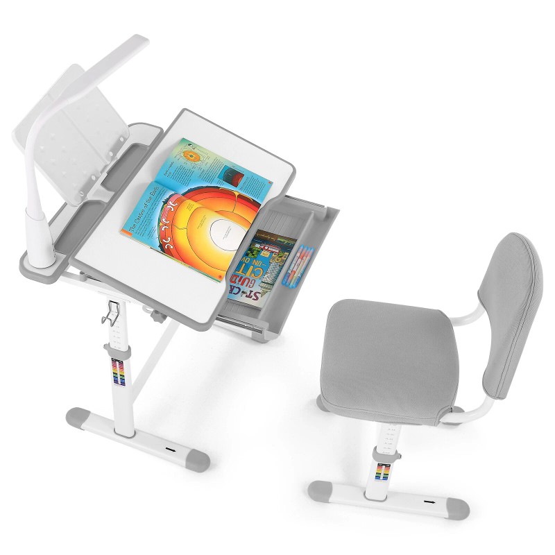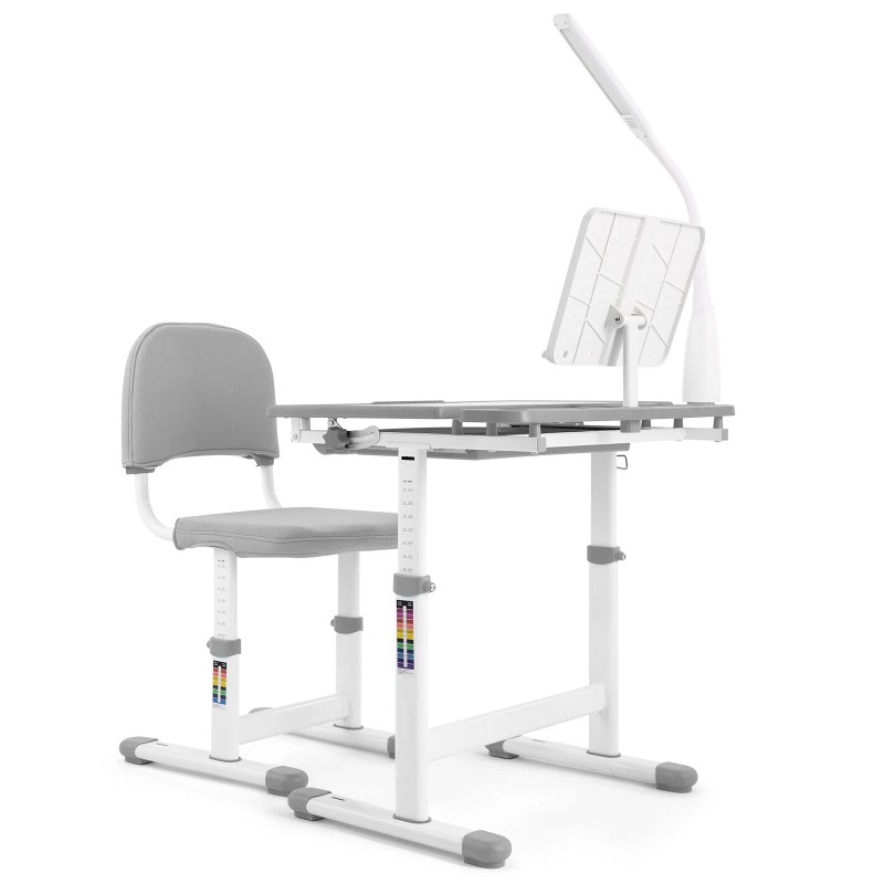Kids Gray Desk Chair Set Height Adjustable Children Study Table with Lamp Drawer
