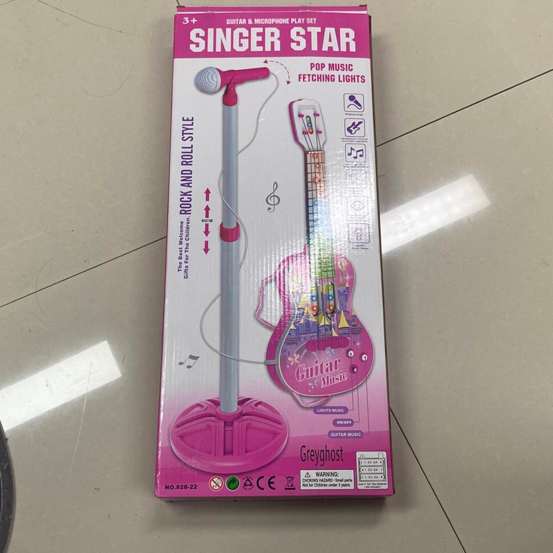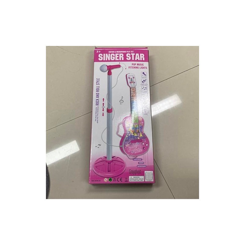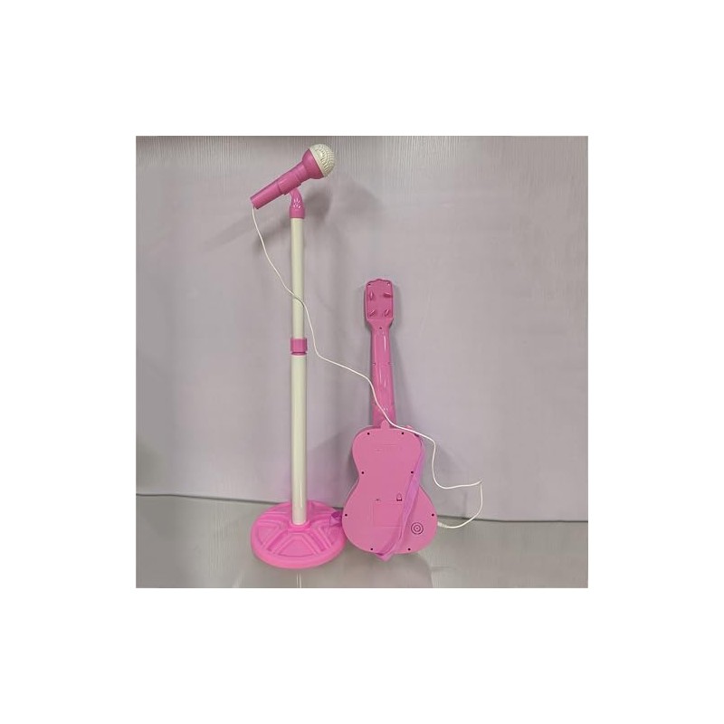 - COMPLETE SET: Pink guitar and microphone play set includes an adjustable microphone stand, guitar with strap, and built-in music features