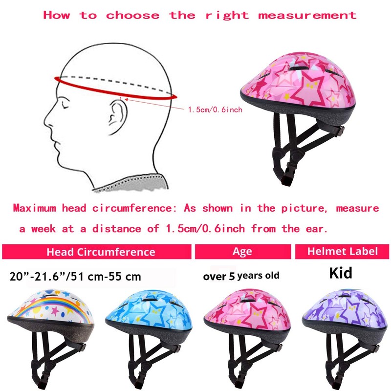 6. Suitable for 3-8 years old, head circumference 20”-21.6”/51 cm-55 cm (Depending on the child's weight and age)