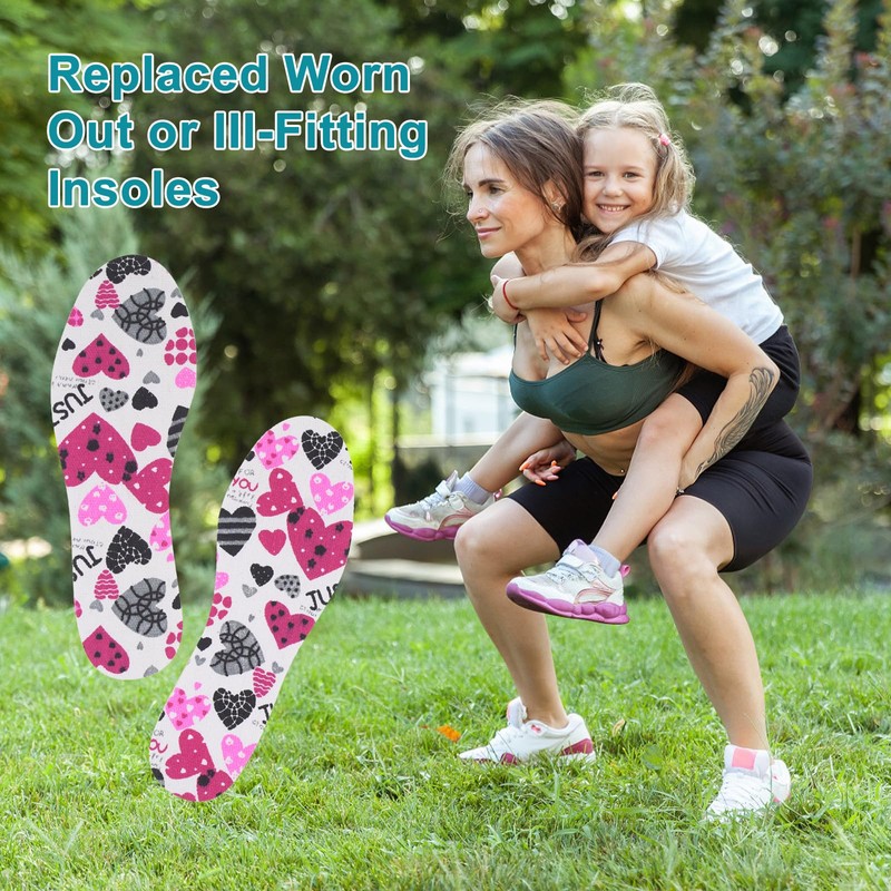 - 【High-quality Material】: These insoles for kids are made of high-quality memory foam material, soft foam shoe inserts are comfortable and breathable, soft and absorb sweat prevent odor, and arch support insoles bring children the most comfortable wearing experience.