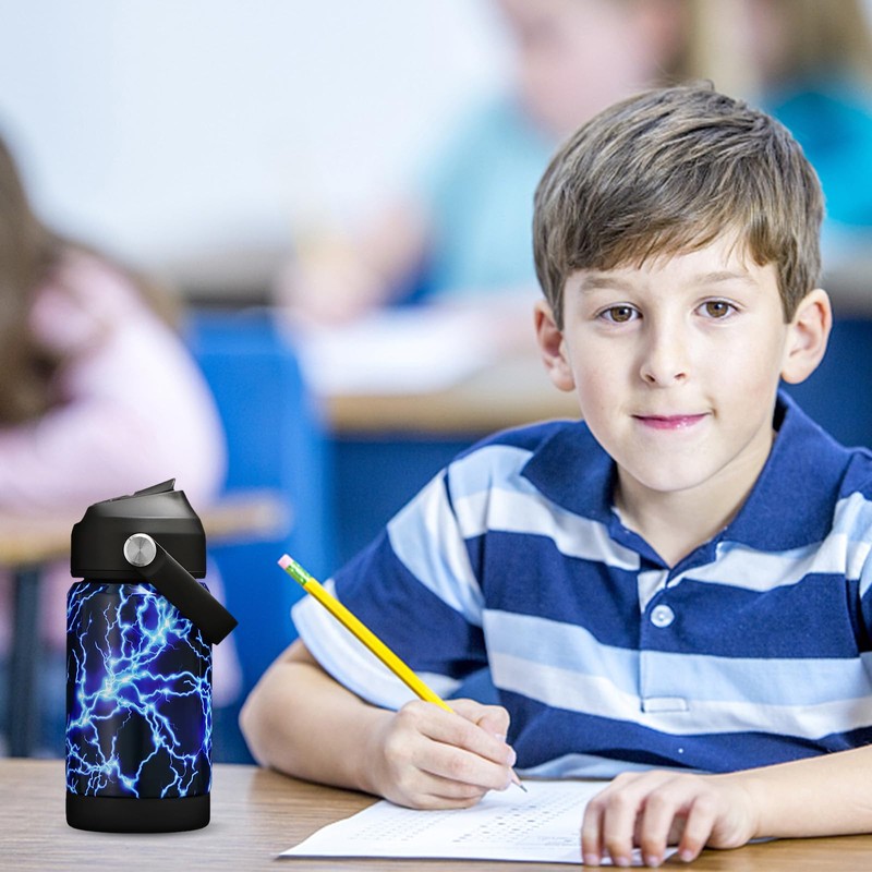 Kids Insulated Water Bottle with Straw,12oz Toddler Cups with Stainless Steel Leak Proof for School Boys Girls(Lightning)