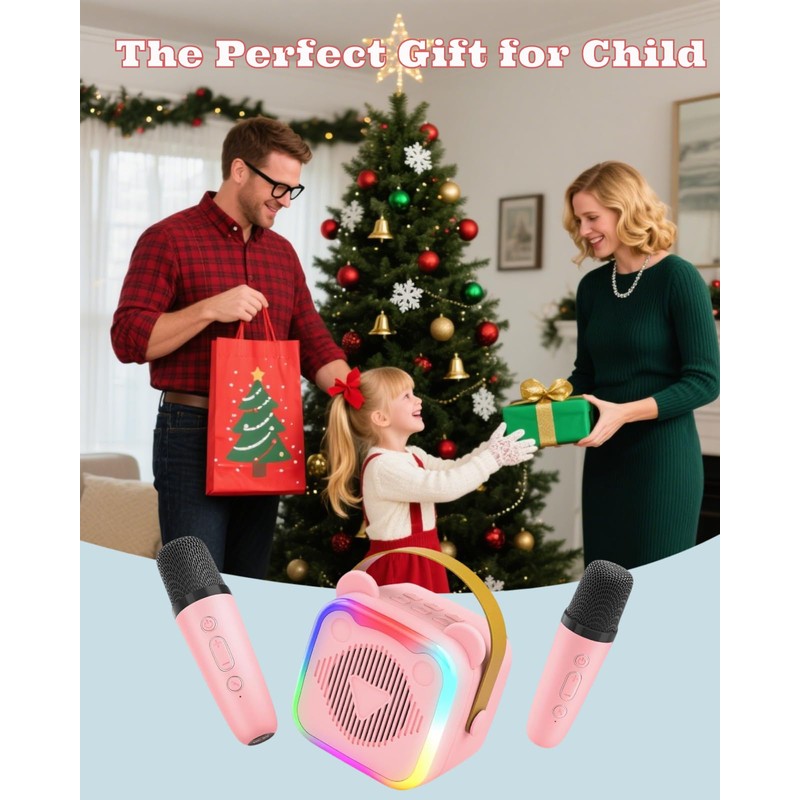 - 【2 Wireless Mics for Duet Fun】Sing together with dual mics! Adjust vocal volume easily—great for shy kids or family performances.