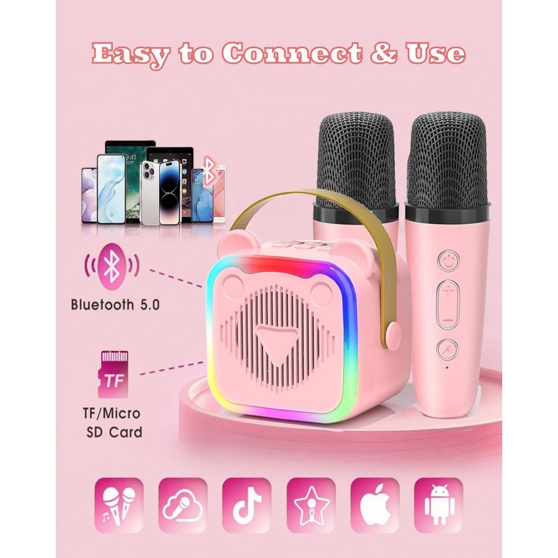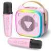 Kids Karaoke Machine with 2 Wireless Microphones, Portable Bluetooth Singing Speaker with LED Party Lights & Echo Effects - Birthday Gift for Girls Boys Ages 3-12, Home Party Music Player(Pink)